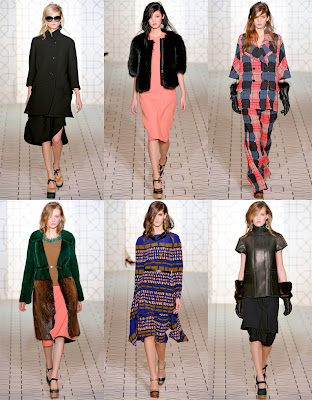 наденет кожаные перчатки с оторчкой из меха, крупные серьги и ожерелья, похожие на разноцветные льдинки, многослойные ассиметричные платья и костюмы из ткани с пестрым рисунком.